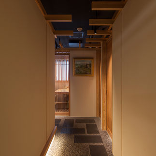 In charge of the lighting design of the new store handled by a long-established eel shop in Usa City, Oita Prefecture. Propose a lighting plan that emphasizes shadowing with indirect lighting and spotlights. The calm interior design based on black creates an elegant and calm adult atmosphere that can be used for various dinners and entertainment.