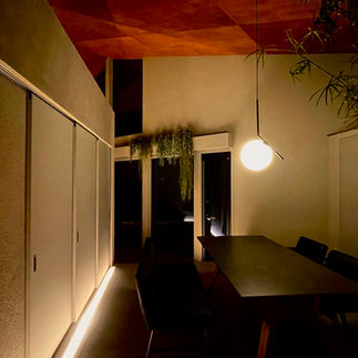 昼と夜とで全く違う表情を見せる空間では、モダンなデザインと天然素材の組み合わせは、現代的でありながら温かみを感じさせ、それぞれのスペースが緩く繋がることで、すべての人が常に同じ空間を共有できるようなっています。